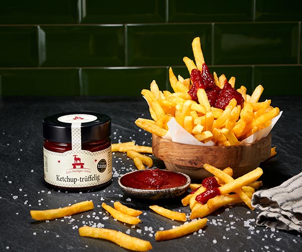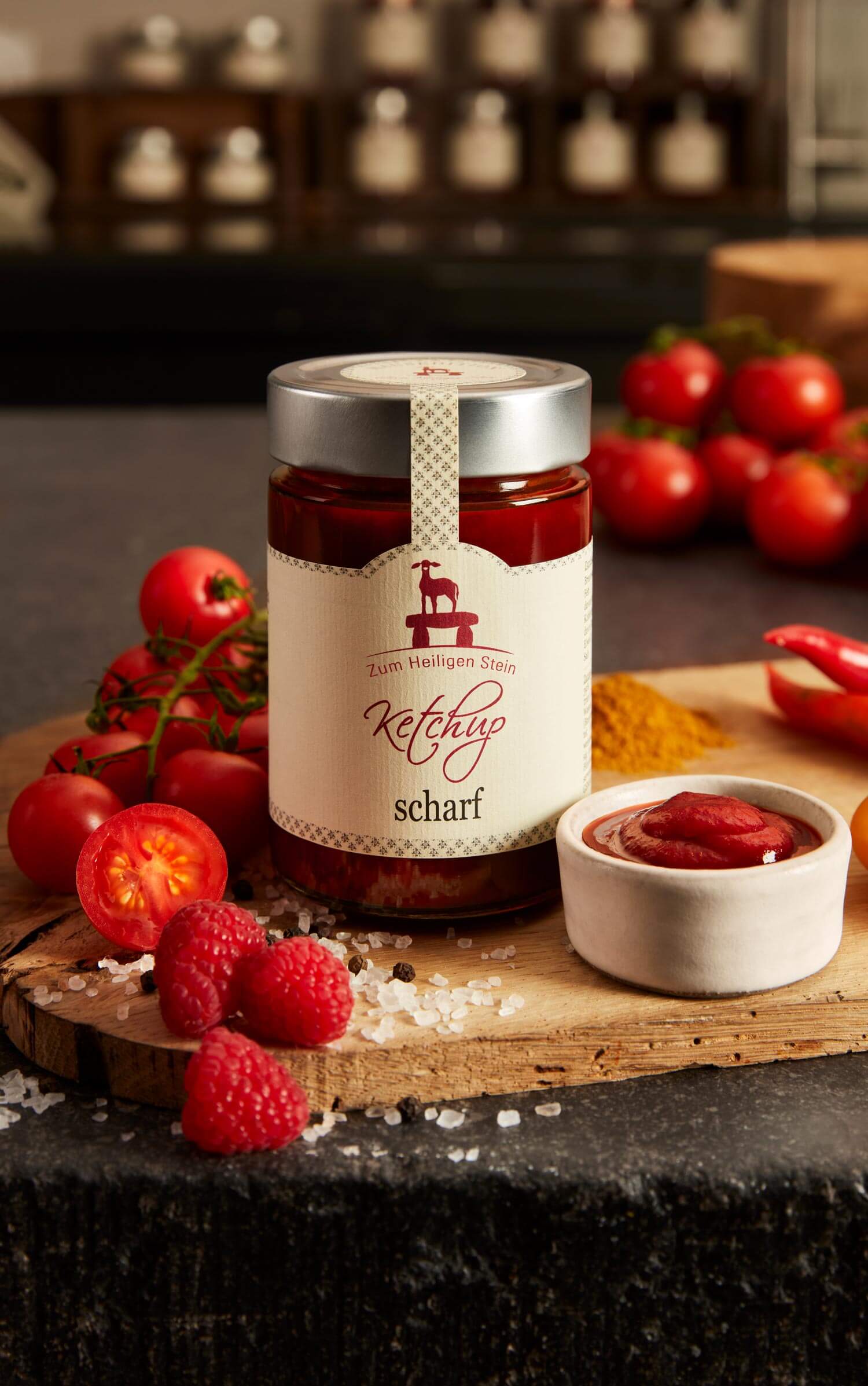 Der handgemachte Ketchup von Zum Heiligen Stein ist vielseitig einsetzbar und eignet sich nicht nur als klassische Beilage.