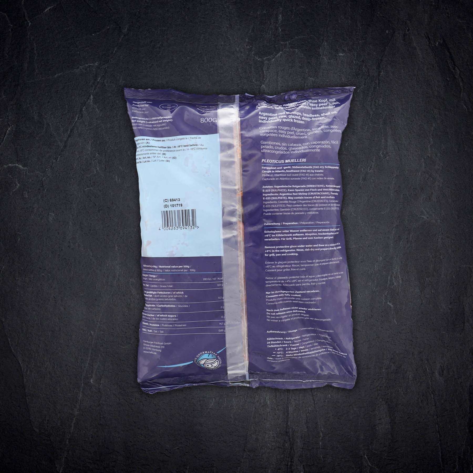 Zutaten: Argentinische Rotgarnele (KREBSTIERE), Konservierungsstoff E-223 (SULPHITE).